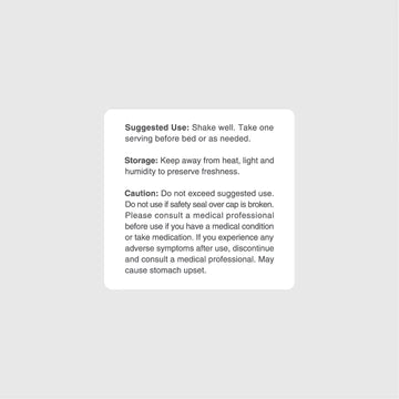 - Herbal Blend includes Chamomile, Hops, Lemon Balm, Passion Flower, and Valerian